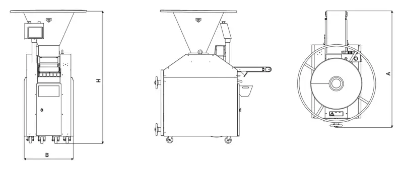 Dış kapaklar ve huni paslanmaz çeliktir. Standart huni kapasitesi 70 litredir. Talep edildiğinde 140 litrelik olarak üretilebilir. Opsiyon olarak teflon kaplama ve güvenlik kapağı yapılabilir.